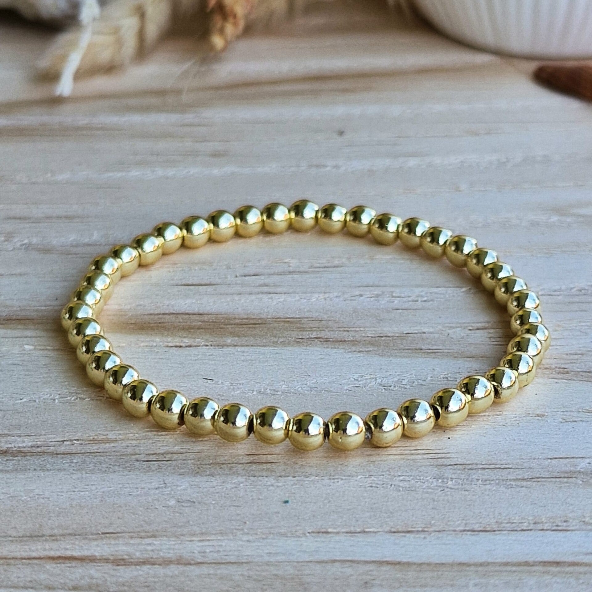 Das Armband besteht aus 6 mm Heischi-Muschel (gefärbt) und goldfarbenen Hämatitkugeln. Der Muschelanhänger ist aus 925er Silber vergoldet.
