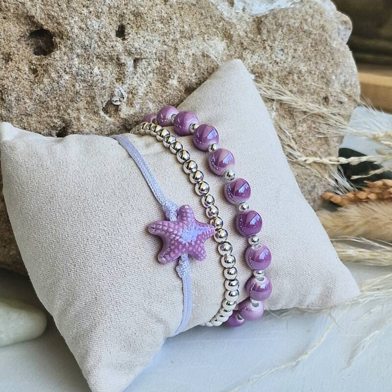 Dieses atemberaubende Lava-Armband in sanften Lavendel- und Beigetönen ist ein absoluter Blickfang!
