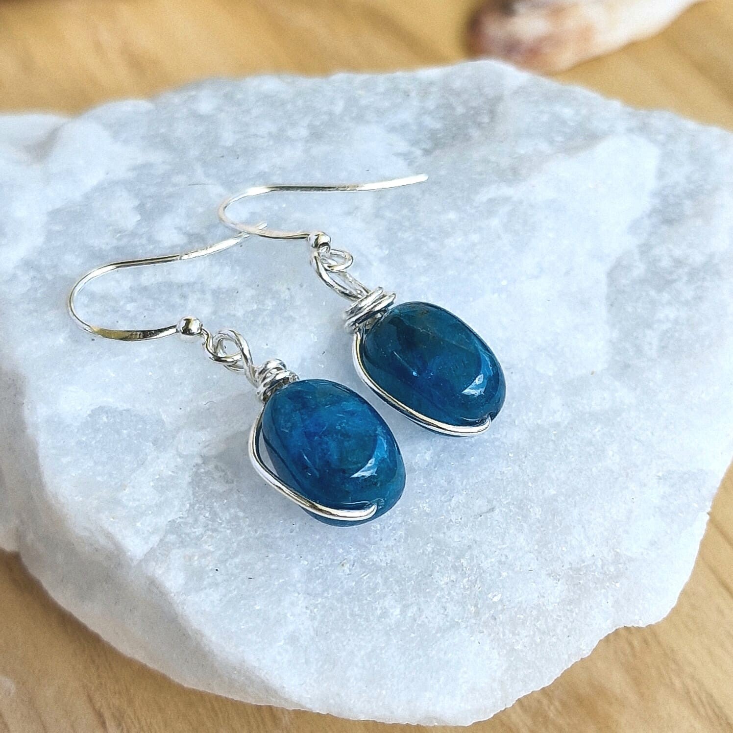 Diese Ohrhänger mit Apatit-Nuggets in 8x10 mm und 925er Silber-Ohrhacken sind ein absoluter Blickfang.