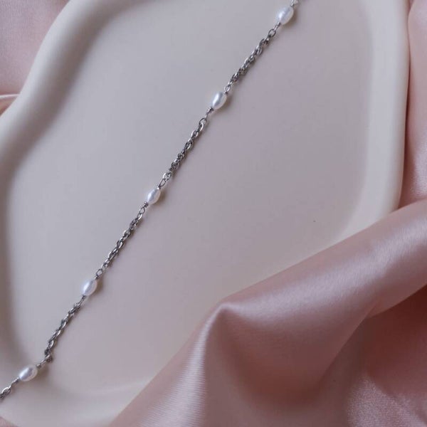 Halskette mit Edelstahl und feinen Süsswasserperlen