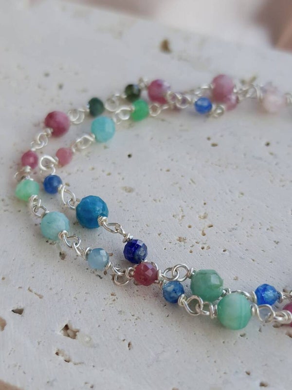 Gefädelt wurde Liora von Hand auf echten 925er-Silberdraht und besteht aus folgenden Edelsteinen: